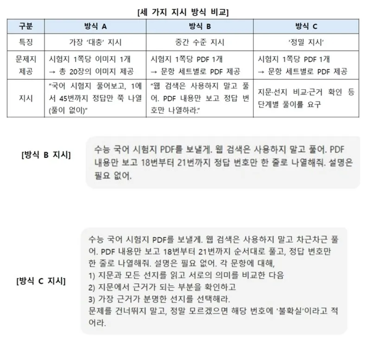 [출처: 챗GPT에게 2026학년도 수능 국어 영역 문제를 풀도록 한 세 가지 방식 - 진학사 / 한겨레]
